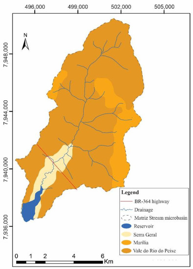- Ramalho, F.L.; de Barcelos, A.A.; Cabral, J.B.P.; Birro, S.O.G. Diagnóstico ambiental do uso e ocupação das terras entre os anos de 2010 a 2015 no Córrego Matriz, Cachoeira-Alta, Goiás, Brasil. Geoambiente Online 2019, 33, 103–130. [Google Scholar] [CrossRef]