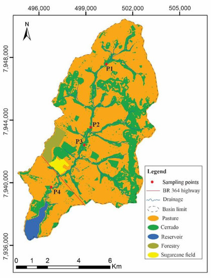 - Batista, D.F.; Cabral, J.B.P.; Carvalho, C.B.; Nascimento, E.S. Caracterização e diagnostico das águas do Ribeirão Paraíso em Jataí-Goiás. Rev. Bras. Geogr. Física 2016, 9, 2132–2147. [Google Scholar]