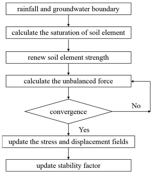 - According to the calculation results of the new slope saturation after rainfall, the strength of the soil element is updated.