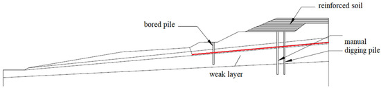 According to the previous section, for this slope, the effect of removing the fill is very limited. If it is necessary to further improve the stability of the slope and ensure the smooth construction of embankment filling, targeted reinforcement measures should still be taken for the weak layer.