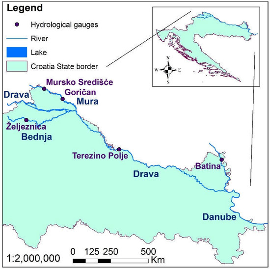 The analysed SS samples were taken from several hydrological stations on major Croatian rivers: the Mura River, Drava River, and Danube River. Due to their length and geopolitical significance, these rivers have a cross-border character and international basins. Therefore, SS quality monitoring is even more critical according to the WFD. In addition, for comparison purposes, one smaller tributary of the Drava River, namely the Bednja River, whose basin extends through a less populated area without industry, was included in the SS chemical status analysis.