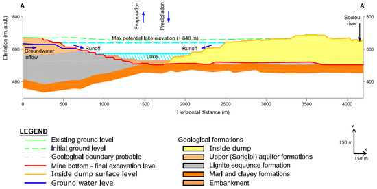 Hydrogeological conceptual model for Kardia pit lake, Greece (the location of the cross section A-A’ is shown in Figure 3).