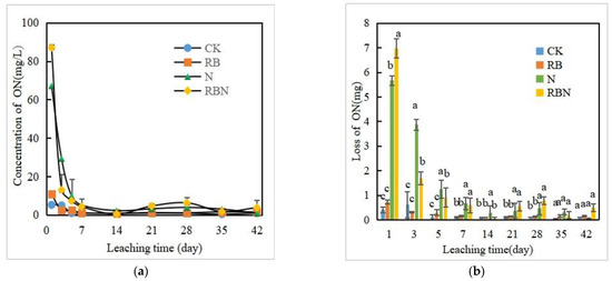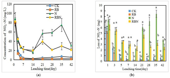 3.3.2. NOx−-N Concentration and Loss in Leachate