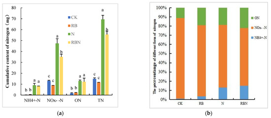 | Treatments | NH4+-N Leached | NOx−-N Leached | Other N Loss | Retained N in the Soil |