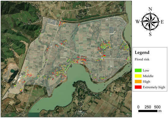 Flooding is one of the most ruinous natural hazards in the world [1,2]. As a great hindrance to society’s sustainable development, urban flooding, especially in dense areas of population, threatens residents’ lives and possessions [3]. The spatial inequalities of flood-exposed areas have increased the difficulties to conduct detailed assessments [4,5]. For instance, a flood of a 50-year return period attacked Thailand in 2011, which caused 65 provinces inundated, over 700 people died and a USD 41.2 billion economic loss [6]. Over the period from 2007 to 2016, Busan suffered several devastating flood damages. The property damage accumulated over the 10-year period is nearly USD 150 million, the highest among the major cities in Korea [7]. In China, flooding is also a frequent disaster to which the government is paying much attention. According to the Ministry of Water Resources of the People’s Republic of China, from 1999 to 2018, 1181 lives were lost and over 889,300 buildings collapsed yearly due to flood disasters [8]. With the rapid development of urbanization, there are more and more residential settlements concentrated in suburban areas [9]. Suburban areas, which usually perform the functions of both urban districts and rural regions, are vulnerable to extreme natural hazards such as serious flooding [10]. Generally, the flood control capacity of suburban areas approaches that in rural areas, such as low construction quality and poor drainage systems. Once an extreme flood event brought out large-scale building destruction and collapse, terrible loss and death would become inevitable [11,12]. Unfortunately, changing environmental conditions are driving worsening flood events, with consequences for cities, local communities, and critical infrastructures [13,14]. Therefore, more concentration should be put on the flood risk assessment of buildings.