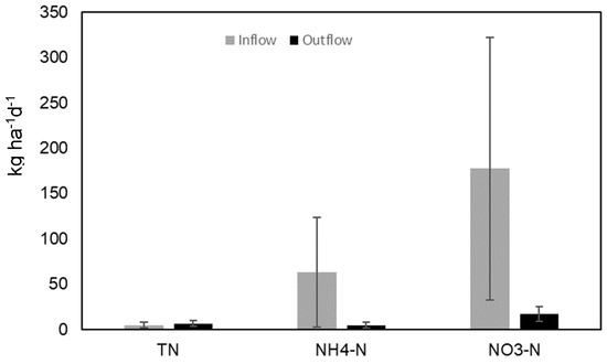 We also estimated the mean instantaneous loading rates received and discharged from managed wetlands. Load was estimated as a flux or instantaneous movement of a mass of total nitrogen through the water control structure using the following equation: