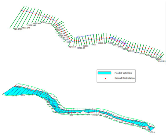 This equation is deduced from the Navier–Stokes equations through simplifications related to the river model. The application of the HEC-RAS model is based on three fundamental steps: (1) Creating, using the ArcGIS tool, the Hec-GeoRAS extension, the Digital elevation model (DEM), and aerial images, the geometrical data of Saquia El Hamra River with the minor and major riverbeds and cross-sections; (2) Applying permanent flow modeling with the Hec-RAS 4.1.0 model, which generates an export file for ArcGIS Hec-Ras, software independent of ArcMap but complementary to the analysis processes; and (3) generating the results of water stain: flood surfaces and depth grids.