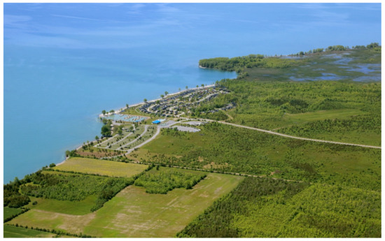 - Rotary Club of Wellington. Wellington Beach Park Improvement Project Plan; Rotary Club of Wellington: Wellington, ON, Canada, 2007. [Google Scholar]
