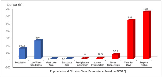 Climate change-driven forces, global warming, Great Lakes water-level fluctuations, and other regional factors (e.g., LULC change) are the most influential parameters in determining West and East Lakes’ water level (and, consequently, the total area).