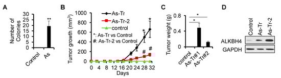 3.2. ALKBH4 Is Required for Arsenic-Induced Tumorigenicity