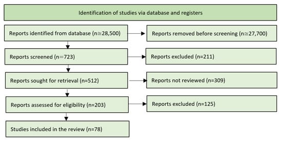 - Page, M.J.; McKenzie, J.E.; Bossuyt, P.M.; Boutron, I.; Hoffmann, T.C.; Mulrow, C.D.; Shamseer, L.; Tetzlaff, J.M.; Akl, E.A.; Brennan, S.E.; et al. The PRISMA 2020 statement: An updated guideline for reporting systematic reviews. BMJ 2021, 372, n71. [Google Scholar] [CrossRef]