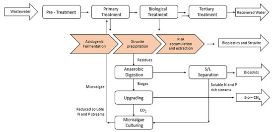 - Crutchik, D.; Franchi, O.; Caminos, L.; Jeison, D.; Belmonte, M.; Pedrouso, A.; Val del Rio, A.; Mosquera-Corral, A.; Campos, J.L. Polyhydroxyalkanoates (PHAs) Production: A Feasible Economic Option for the Treatment of Sewage Sludge in Municipal Wastewater Treatment Plants? Water 2020, 12, 1118. [Google Scholar] [CrossRef]