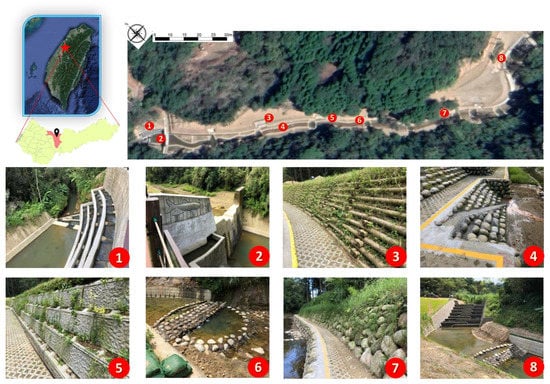- Chen, J.-C.; Huang, C.-L.; Chen, S.-C.; Tfwala, S.S. Visual harmony of engineering structures in a mountain stream. Water 2021, 13, 3324. [Google Scholar] [CrossRef]