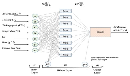 - Mandal, S.; Mahapatra, S.S.; Sahu, M.K.; Patel, R.K. Artificial Neural Network Modelling of As(III) Removal from Water by Novel Hybrid Material. Process Saf. Environ. Prot. 2014, 93, 1–16. [Google Scholar] [CrossRef]