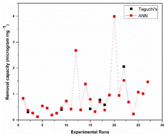 A Taguchi design methodology was used to design the batch adsorption experiments. Orthogonal arrays (OA’s), S:N analysis and variance were used as practical tools to analyze design outcomes [83]. As adopted in the present study, Taguchi’s approach involved four phases: selection of parameters; experimental investigation; analysis; and validation.