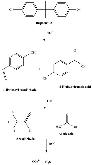 - Watanabe, N.; Horikoshi, S.; Kawabe, H.; Sugie, Y.; Zhao, J.; Hidaka, H. Photodegradation mechanism for bisphenol A at the TiO2/H2O interfaces. Chemosphere 2003, 52, 851–859. [Google Scholar] [CrossRef]