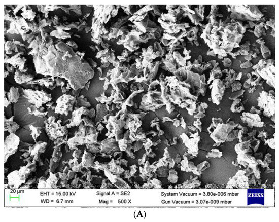 Fourier transform infrared spectroscopy was used to assess the functional groups on the biosorbents’ surfaces. The PerkinElmer FTIR device acquired a wavelength between 400 and 4000 cm−1. SEM-coupled spectroscopy was used to examine the materials’ shape and structure after and before MB adsorption, as well as to gather data on the samples’ elemental composition.