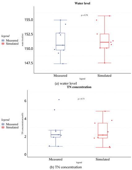 Error box simulation of the measured value error box plot. (a) water level, (b) TN concentration.