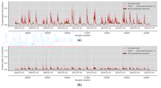 Sustainable water resource management is an essential requirement worldwide, and streamflow forecasting is an essential component of an effective water resource management plan []. Accurate streamflow forecasting plays a critical role in many decision-making scenarios related to water resource management such as flood/drought control and mitigation, reservoir management, hydropower generation, sediment transport, and irrigation management []. Owing to the complex and nonlinear characteristics associated with streamflow [], forecasting is challenging. Sustainable water resource management plans are used to meet the requirements of people today and in the future. To support risk-aware decision-making in water resource management, current streamflow forecasting approaches should be improved to estimate forecasting uncertainties and leverage large volumes of data with complex dependencies [].