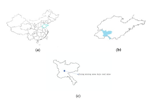 Mine Location Map: (a) Map of China. (b) Map of Shandong. (c) Diagram of Anju Coal Mine in Jining Mining District.