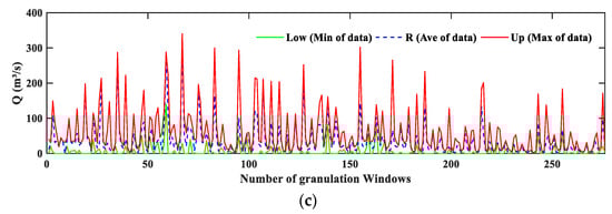 Step 1. Fuzzy information granulation processing. Select historical runoff data as samples for fuzzy information granulation processing. First, determine the size of the window and the scale of prediction, and then use the membership function to generate the minimum (Low), average (R), and maximum (Up) sequences that can reflect the rule of runoff change.
