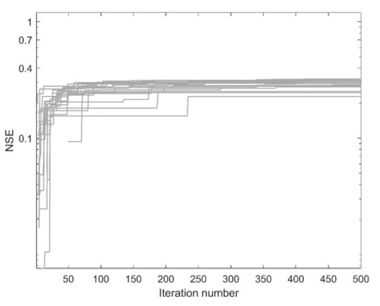 NSE of each iteration step with DE-MC 20 chains for real case study.