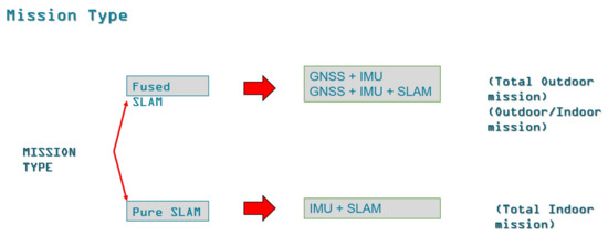 - DYNAMIC initialization, with a duration of 3–5 min, during which the backpack is worn on the back, making a quadrilateral walking with it in the back, and, at the end, a walk on the diagonals of the quadrilateral until the INS GOOD message appears, and the INS_GNSS will have a value below 1; usually, the indicated value is 0.1–0.2.