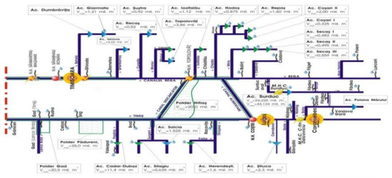 The Timiş–Bega interconnection is a double connection consisting of two channels connecting the Timiş River and the Bega River [33,34,35] via a discharge channel (Figure 8).