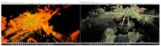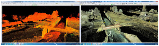 As part of the research carried out for the elaboration of this scientific paper, LAS data type was imported and processed using Cyclone, Global Mapper [59], 3D Resheaper and CloudCompare [60] programs and the file with the E57 extension, thanks to the new version from Cyclone Model, version 9.3, processed data could be imported directly into Cyclone Model due to the new option of ‘Import data from Leica Pegasus’.