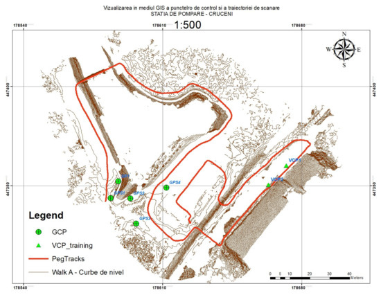 All this presented data finally led to a scan with high precision, resulting at the end of data processing and application of the Kalman filter into a cloud of points with an accuracy of 1–3 cm, accuracy which was verified with the help of the resulting stereographic images, where the positioning accuracy of the point clouds were improved when used ground control points (GCP). These ground control points (GCP) had the role of verification and control as well as in the processing of point clouds.