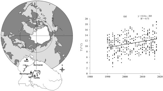 - Moiseenko, T.I.; Dinu, M.I.; Bazova, M.M.; de Wit, H.A. Long-term changes in the water chemistry of subarctic lakes as a response to reduction of air pollution: Case study in the Kola North, Russia. Water Air Soil Pollut. 2015, 226, 1–12. [Google Scholar] [CrossRef]