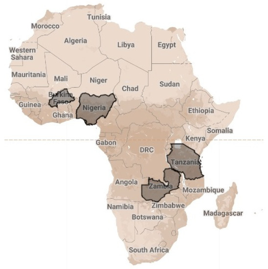 The four African countries selected for this study were Burkina Faso, Nigeria, Tanzania, and Zambia (Figure 1). The countries were selected for their geographical diversity, to include the regions of West Africa, East Africa and Southern Africa, as well as based on WaterAid’s in-country presence and team availability.