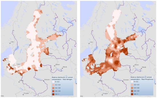 The Baltic Sea is almost totally surrounded by land. Therefore, it is more endangered by pollution from the land than from marine sources. Moreover, the southern part of the Baltic Sea Region is more densely populated, with predominant agriculture areas [1,2], which is a cause of this region’s greater pollution.