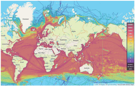 Worldwide marine traffic in 2021, generated from: Marine Traffic [6].