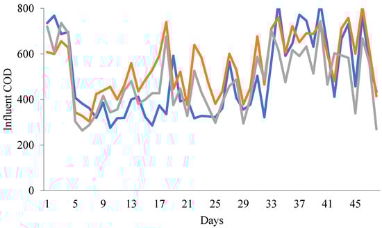 The characteristics of the canteen wastewater fluctuated widely across each day as well as day-to-day, as reflected in the variation in COD (Figure 9).