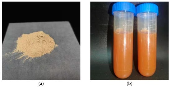 RIR powder (a); the supernatant solution of RIR-NaOH (b).