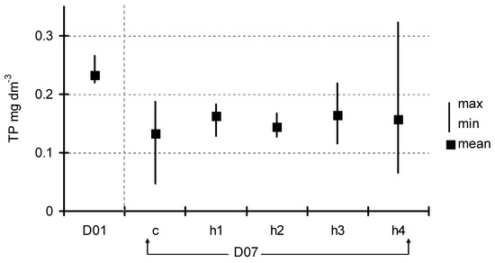 Change in TP concentration between D01 and D07. Observed differences were not significant (ANOVA at p < 0.05).