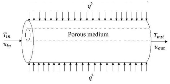 In the last two decades, convection heat transfer in porous media has been widely studied because it has a wide range of applications in a variety of fields, such as geothermal energy [1], chemical engineering [2], microscale engineering [3,4], etc. Actually, porous media has brought significant changes to heat transfer enhancement [5,6,7].