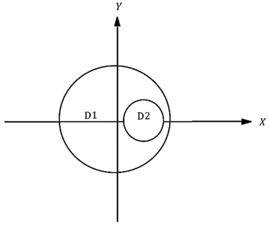 Schematic figure of domains 1 and 2 in tube cross-section.