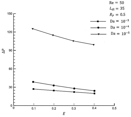 - A decreasing Darcy number gives rise to a pressure drop. This is due to a smaller Darcy number leading to a decline in permeability. On the other hand, rising eccentricity results in a decreasing pressure drop. In addition, the reduction rate grows while the Darcy number decreases. Pressure drop falls at the fastest rate to about at and . Applying eccentricity can be considered as a solution to reduce the pressure drop in porous media.