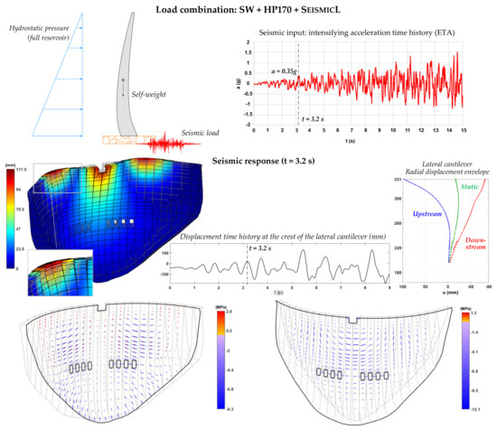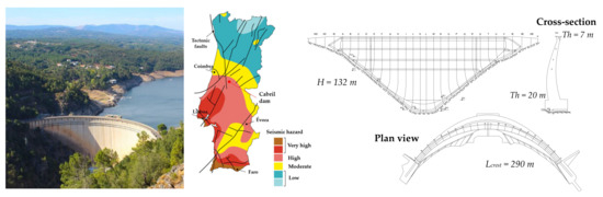 Large concrete dams are civil engineering structures with significant social, environmental, and economic impact. In fact, dams play a key role in the proper management of freshwater resources, namely for water supply, flood control, soil irrigation, and energy production, and they have become vital to populations and societies [1,2], not only due to the global increase in water demand, but also because of climate change [3]. Most dams are structures of high potential risk, since incidents or accidents may result in significant losses for populations and the environment [4]. For these reasons, dam engineers must ensure the best operational conditions and the structural safety of dams in normal service conditions and during exceptional events, under both static and dynamic loads.