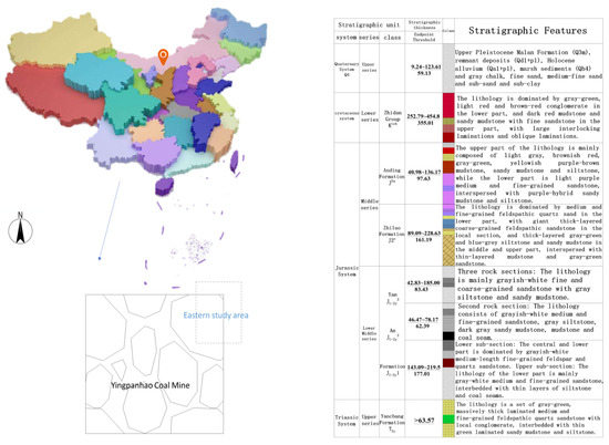The Yingpanhao mine field is located in the northwest inland, the terrain is high in the northwest and low in the east, with relatively flat topography, dominated by sand dunes and beaches. The study area is located in the Inner Mongolia Autonomous Region, which has a mid-temperate semi-arid continental climate, with hot and cold seasons and precipitation concentrated in summer and autumn, accounting for 70% of the total annual precipitation. The Yingpanhao mine field has a simple structure, and the stratum is a monoclinic structure in general, with a few gentle undulations and no faults, folds or magma intrusion.