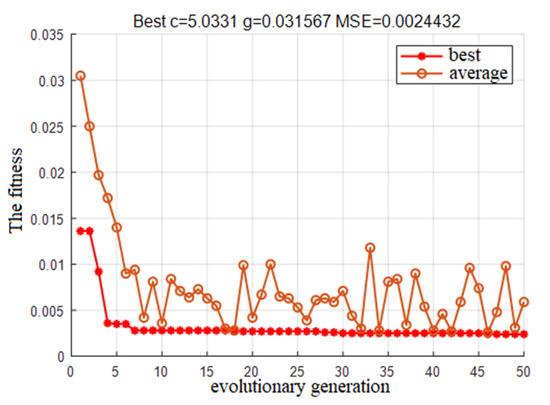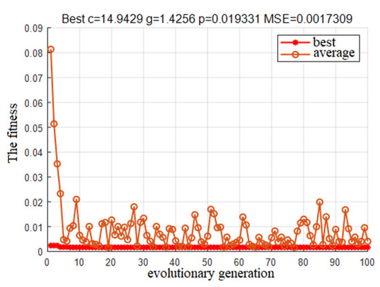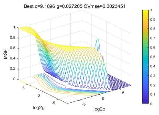 • The optimized optimal parameters c and g are respectively substituted into the SVM regression model to train the sample data.