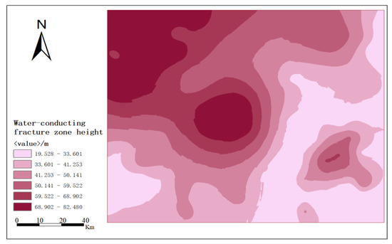 In this paper, we use ArcGIS data spatial analysis function to analyze and mine the known borehole data, effectively manage and integrate the database, and evaluate and interpolate the unknown geographic information of the study area by using the Kriging interpolation method to obtain the distribution map of the water-conducting fracture zone in Yingpanhao Coal Mine, as shown in Figure 16.