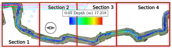 Measurement campaign four was performed on 9–11 August and it consisted of a total of 18 points, which were selected at constant distances along the river to locate the sections where flow losses occur in the river. This campaign focused on monitoring the flows measured during the third campaign, continuing with flow measurements up the Tamul waterfall.