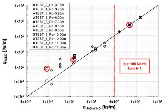 Analogous to what was discussed above, the author found values of fWIND that largely exceeded Equation (1), being significantly larger than unity also for values of qNO-WIND of the order of 10 l/s/m. Like in Figure 17, the maximum measured enhancement factor is of the order of 10.