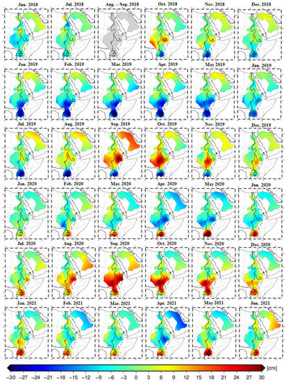 In the following, the TWS results are given in terms of EWH, which is computed for 36 months (from June 2018 till June 2021).