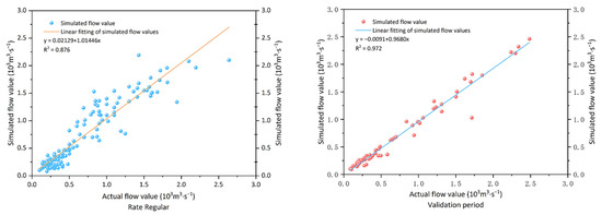 Scatterplot of simulated and measured monthly runoff values in the source region of the Yellow River.