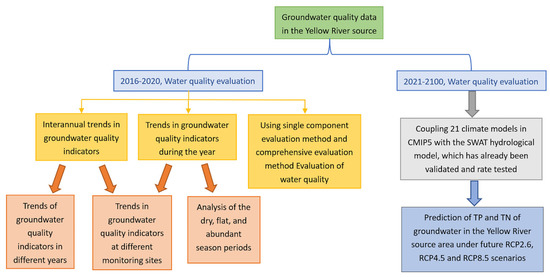 In this paper, the interannual and annual variations of groundwater quality in the source region of the Yellow River from 2016 to 2020 were investigated, the water quality was evaluated, and the contents of TN and TP in the source area from 2021 to 2100 were predicted. The results showed that: