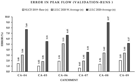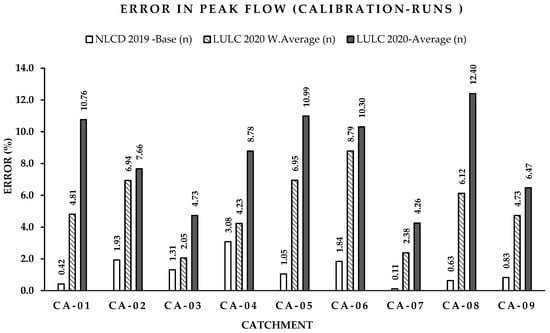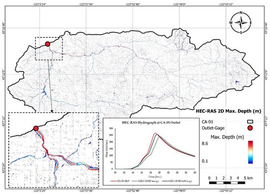 - During the calibration and validation procedures using the HEC-RAS 2D model, the NLCD 2019 dataset was evaluated using the measured peak flows for nine catchments in the conterminous United States with an accepted error in peak flow of 0.42% to a maximum of 3.08%.